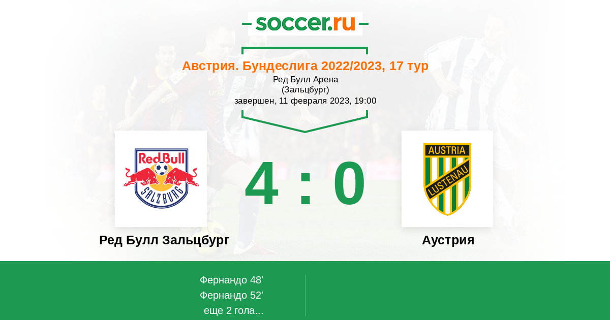 Протокол матча Ред Булл Зальцбург против Аустрия