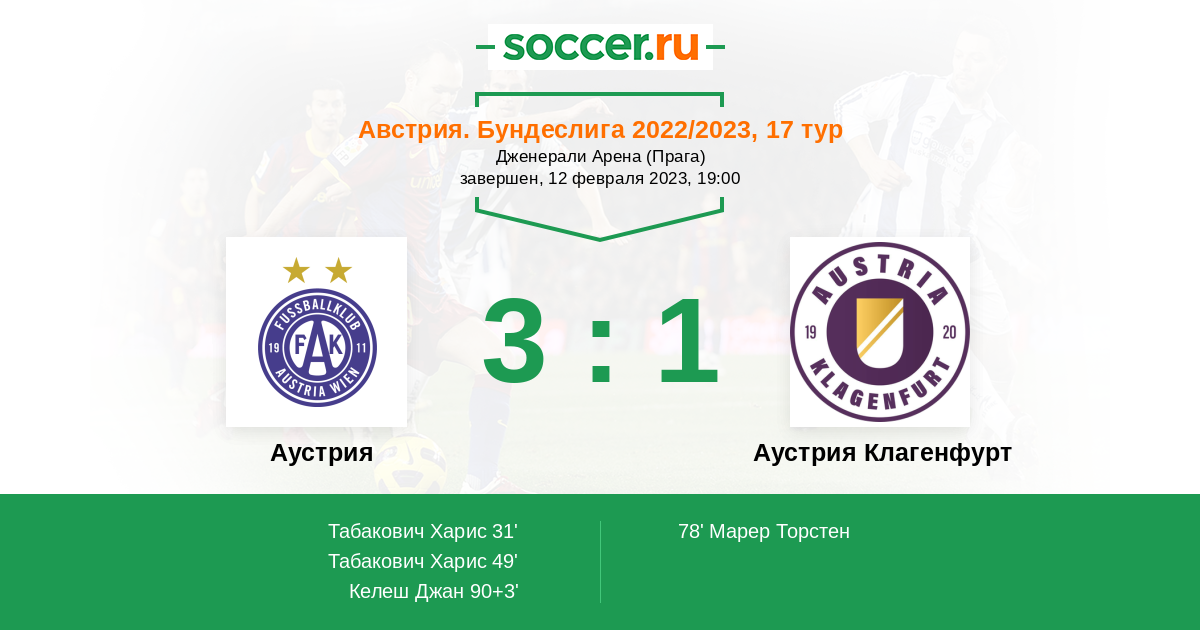 Протокол матча Аустрия против Аустрия Клагенфурт