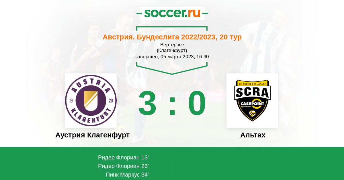 Протокол матча Аустрия Клагенфурт против Альтах