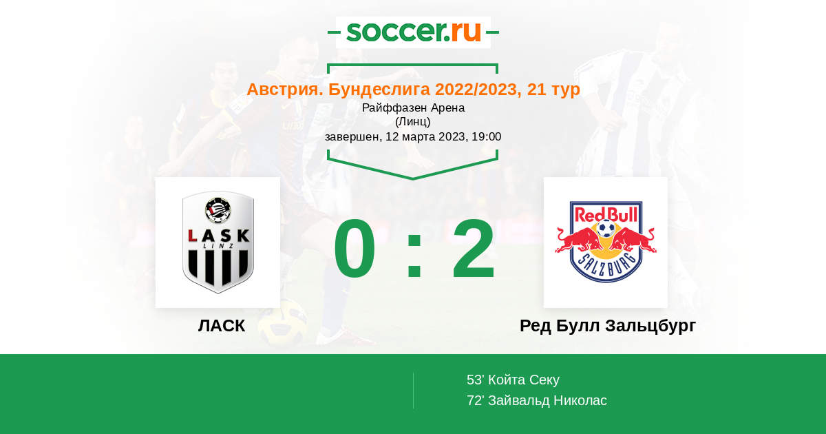 Протокол матча ЛАСК против Ред Булл Зальцбург