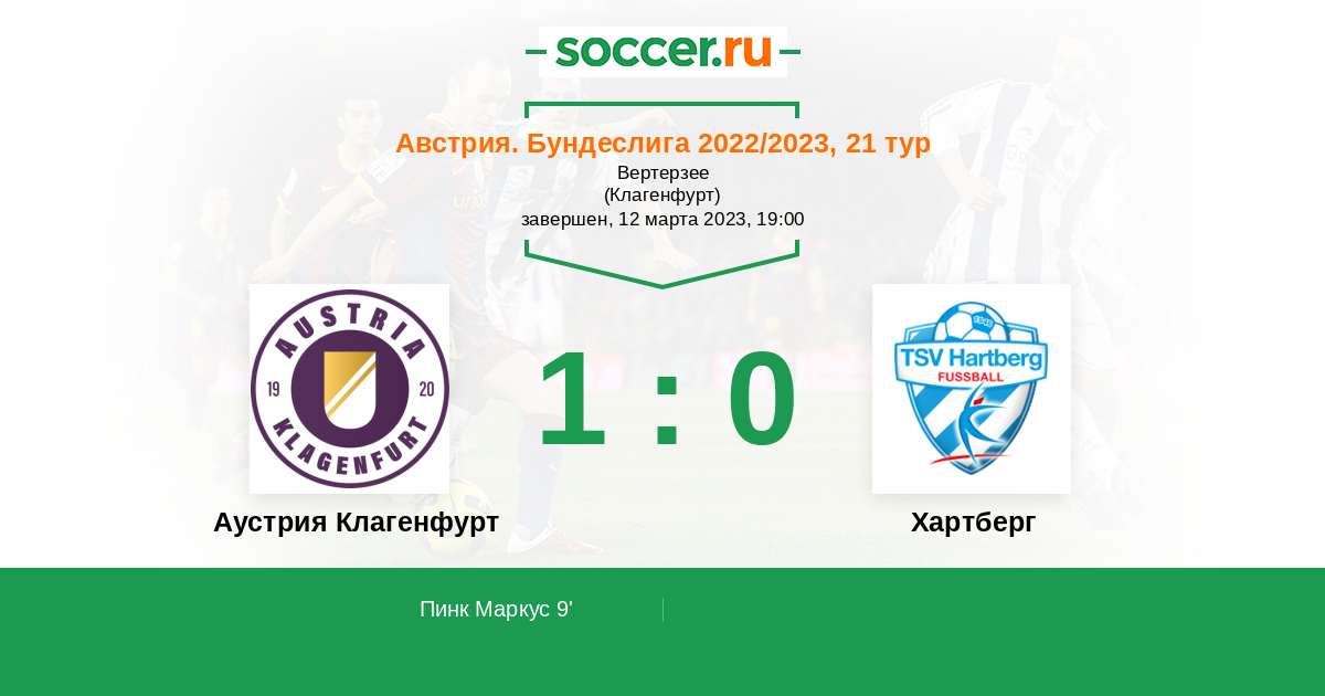 Протокол матча Аустрия Клагенфурт против Хартберг