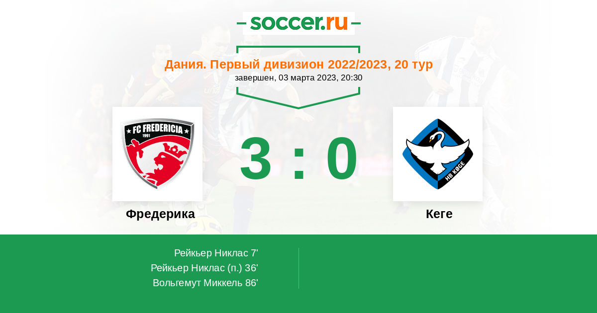 86' (3:0) Вольгемут Миккель (8) (Кристенсен Фредерик (14))
