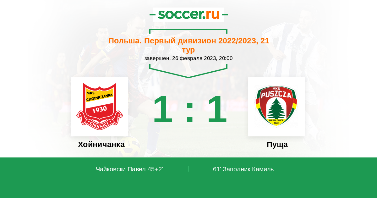 Протокол матча Хойничанка против Пуща