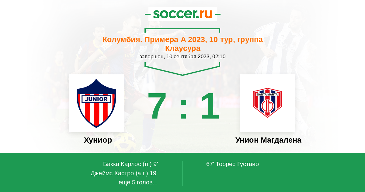 67' (6:1) Торрес Густаво (11) (Контрерас Жоэль (29))