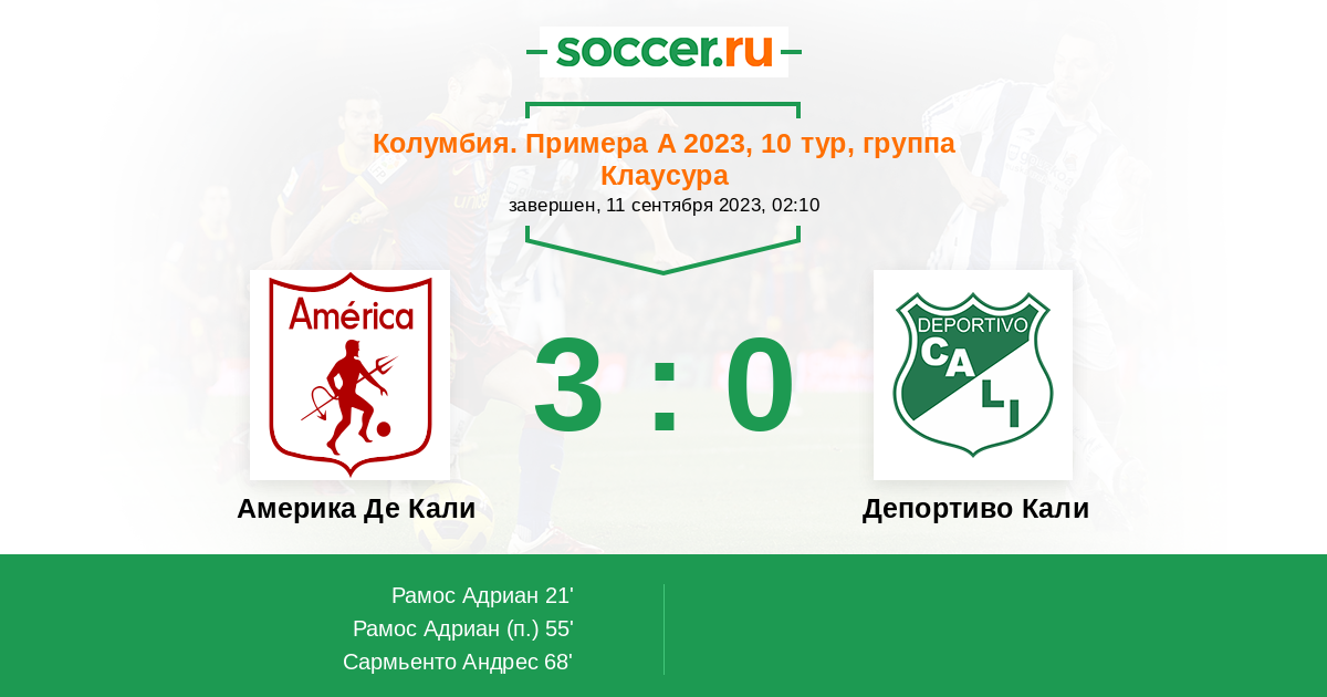 68' (3:0) Сармьенто Андрес (29) (Барриос Кристиан (7))