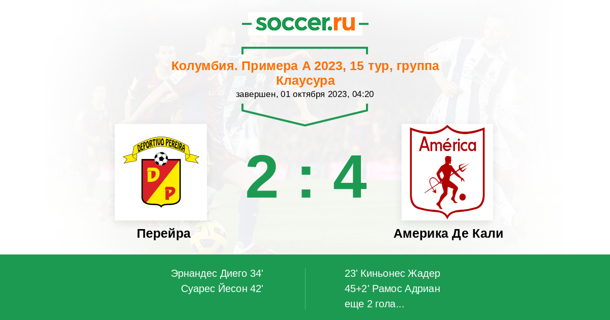 Протокол матча Перейра против Америка Де Кали