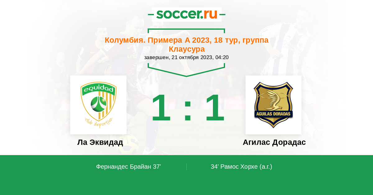 34' (0:1) Автогол Рамос Хорхе (9)