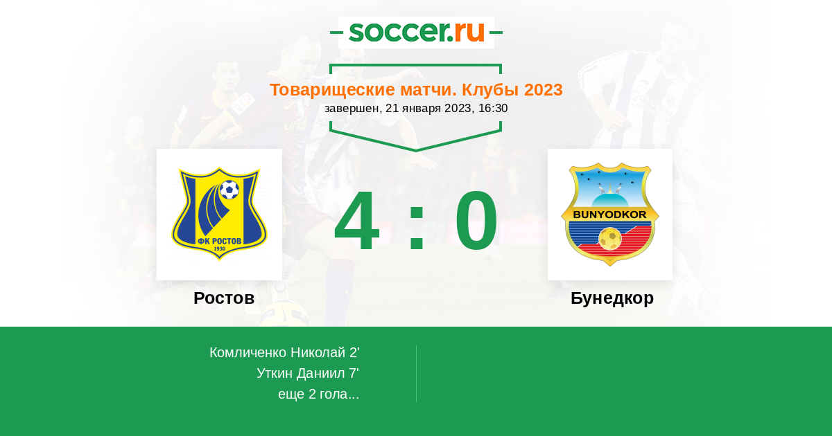 Протокол матча Ростов против Бунедкор