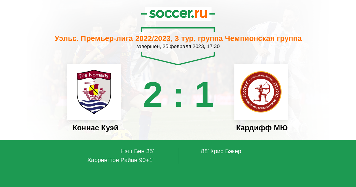 Протокол матча Коннас Куэй против Кардифф МЮ