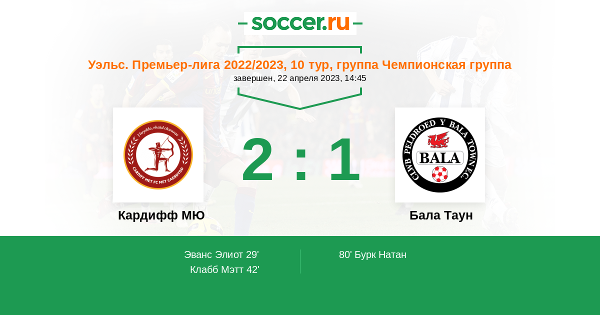 Протокол матча Кардифф МЮ против Бала Таун