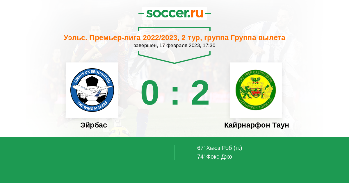 Протокол матча Эйрбас против Кайрнарфон Таун