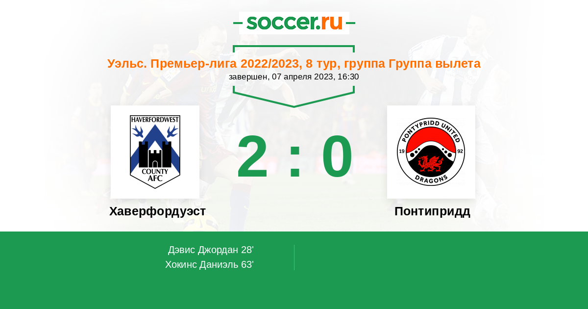 Протокол матча Хаверфордуэст против Понтипридд