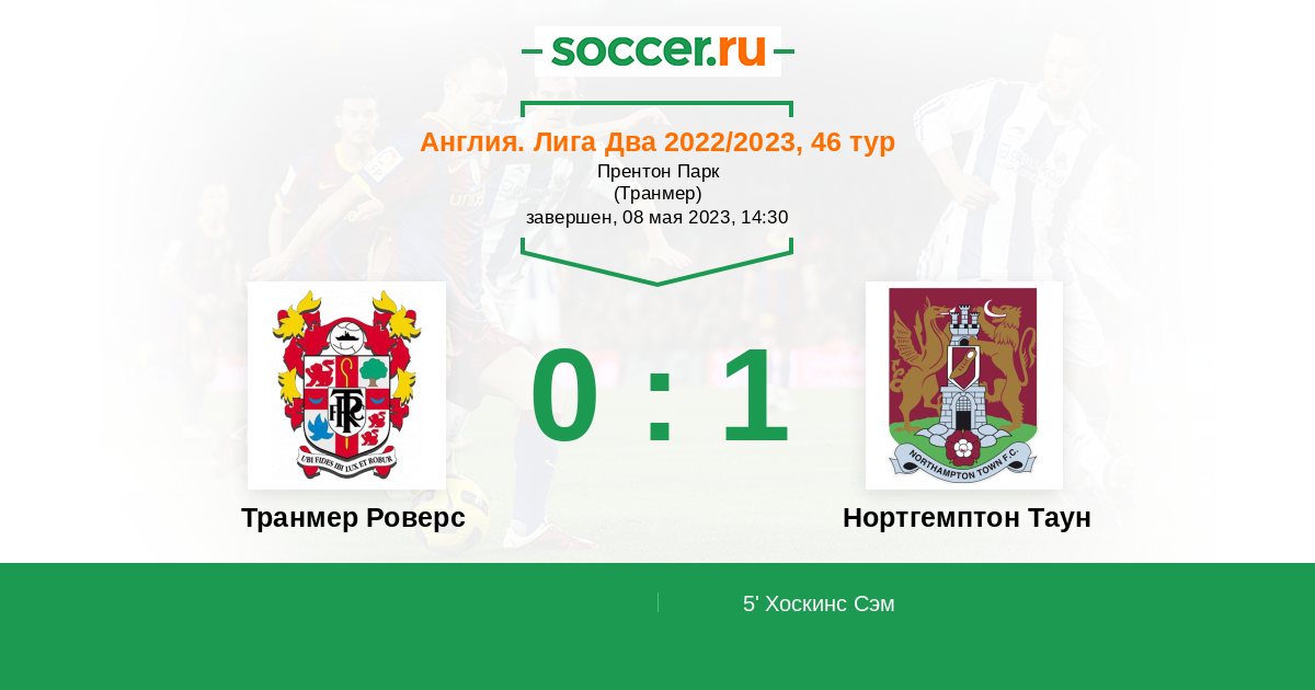 Протокол матча Транмер Роверс против Нортгемптон Таун