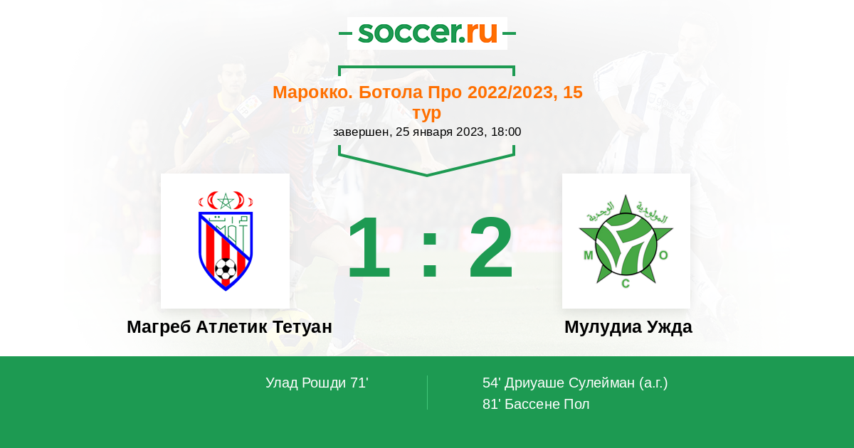 Протокол матча Магреб Атлетик Тетуан против Мулудиа Ужда