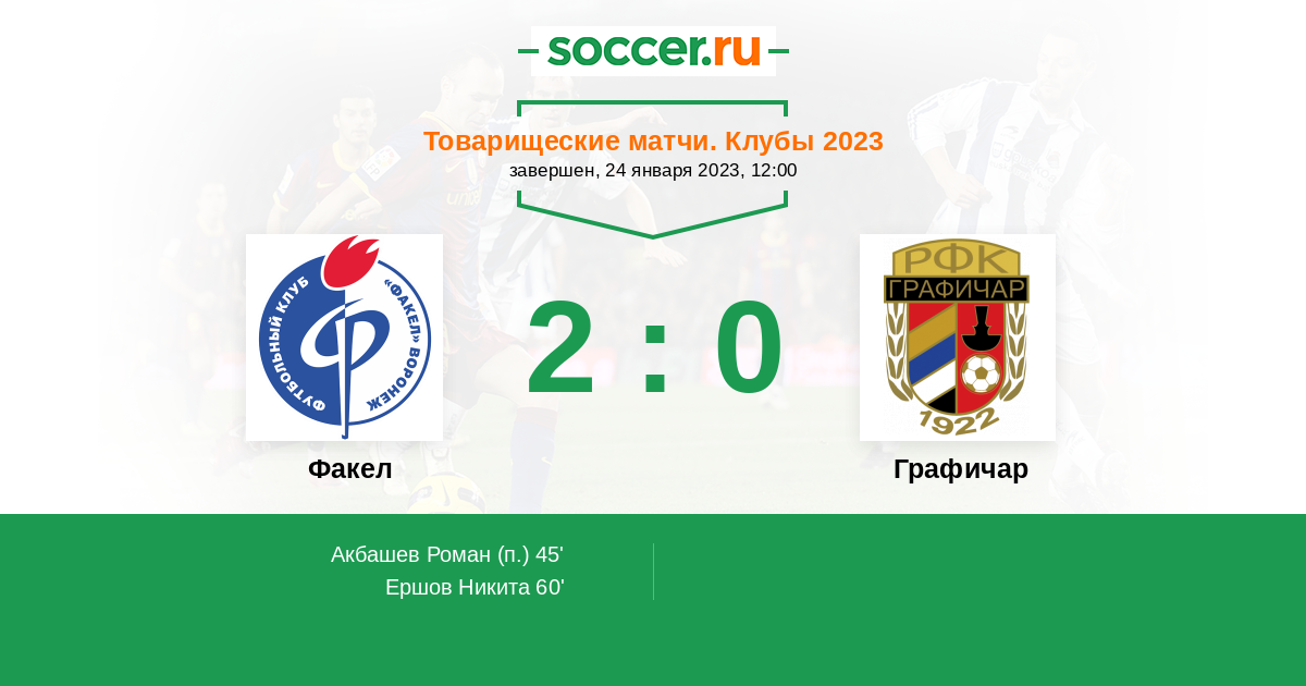 Протокол матча Факел против Графичар
