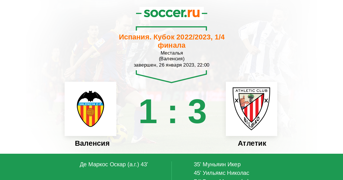 В этом матче между командами Валенсии и Атлетик Бильбао ожидается упорная игра где для каждой из команд будет важным результат этой игры. Так как этот турнир даёт более менее реальный шанс чтобы завоевать трофей. Удачи