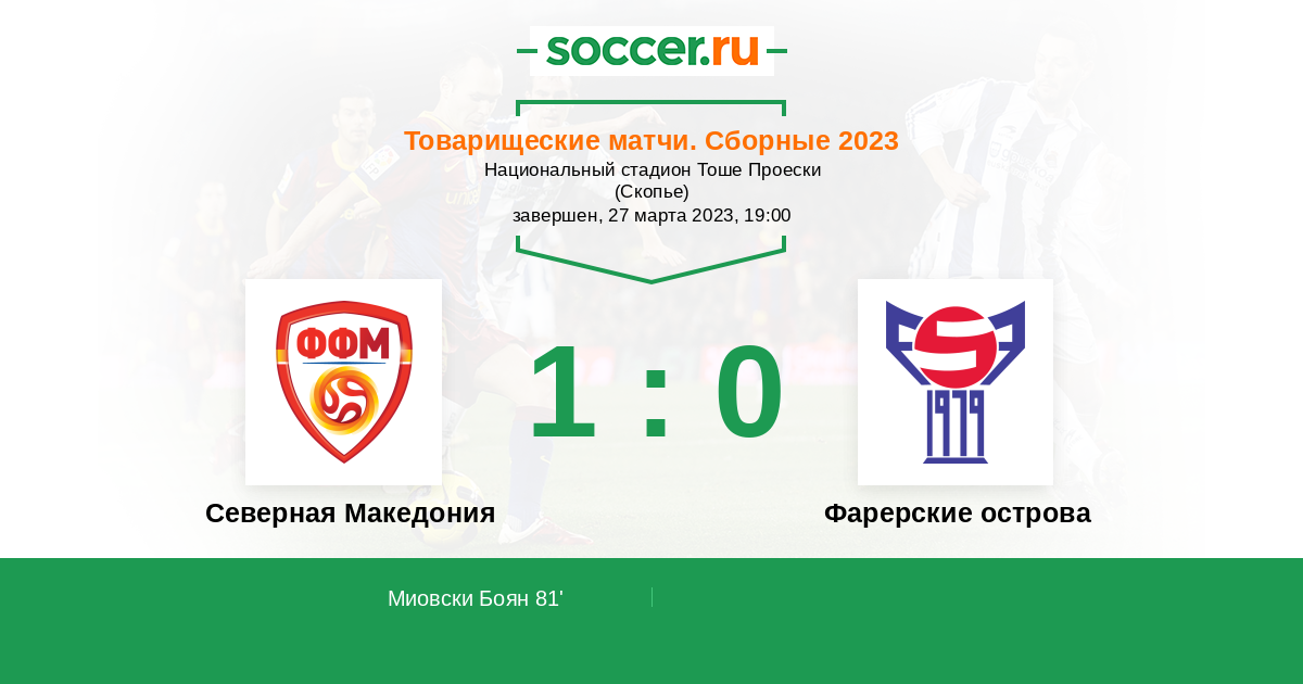 Протокол матча Северная Македония против Фарерские острова