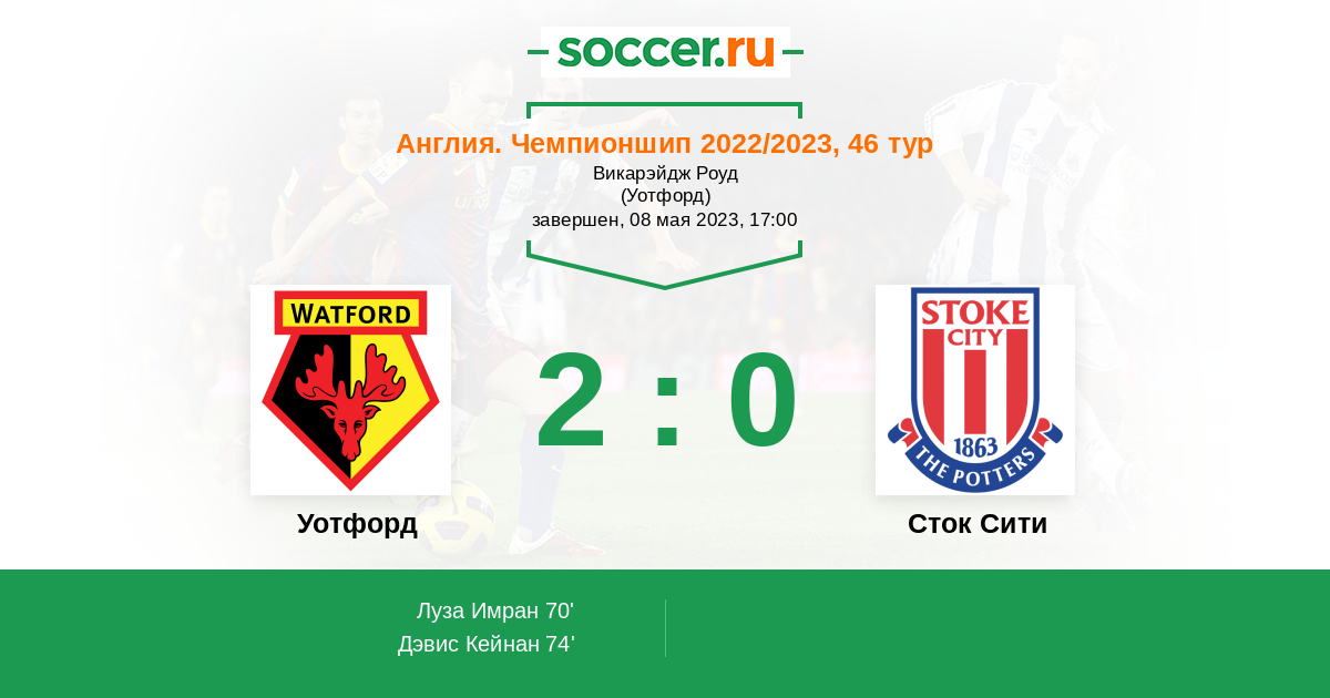 Протокол матча Уотфорд против Сток Сити