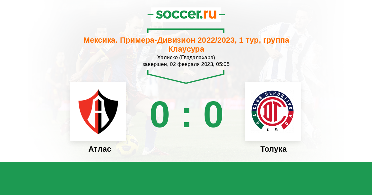 Протокол матча Атлас против Толука