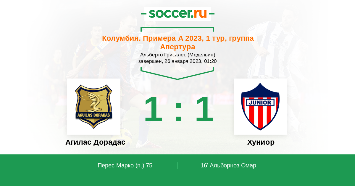 16' (0:1) Альборноз Омар (29) (Беррио Лейдер (18))
