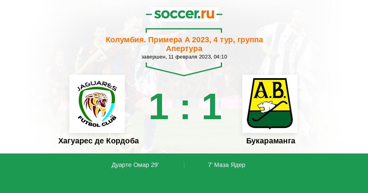 Протокол матча Хагуарес де Кордоба против Букараманга