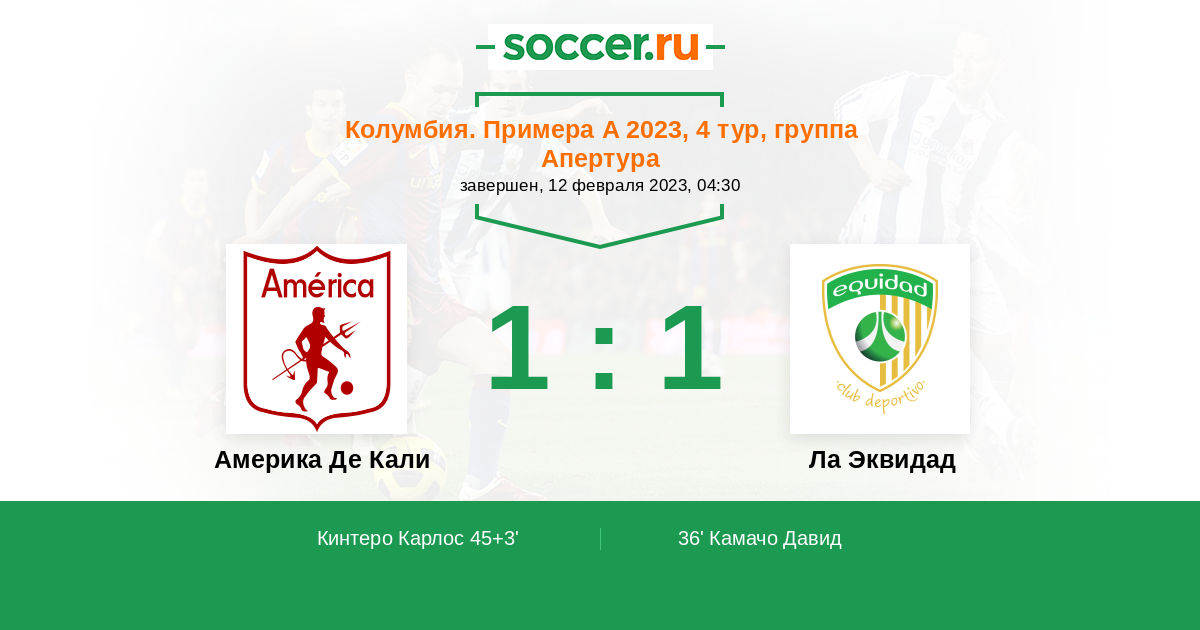 45+3' (1:1) Кинтеро Карлос (25) (Андраде Кевин (5))