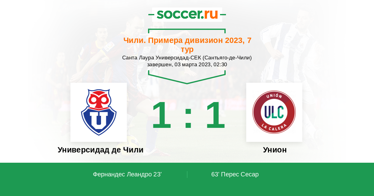 Протокол матча Универсидад де Чили против Унион