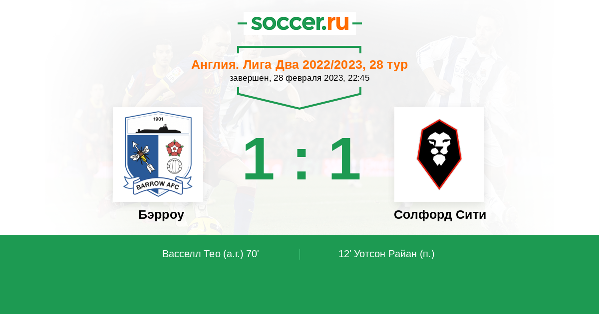 Протокол матча Бэрроу против Солфорд Сити