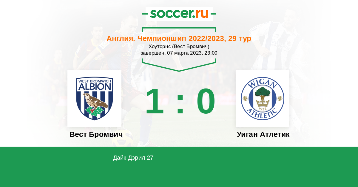 Протокол матча Вест Бромвич против Уиган Атлетик