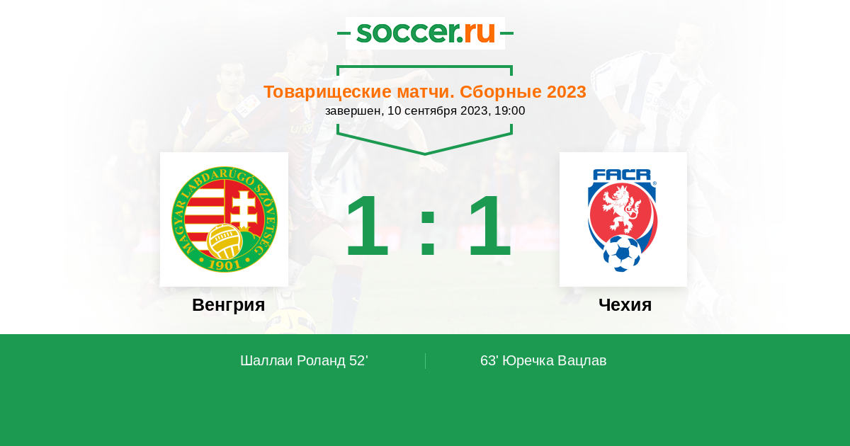 Протокол матча Венгрия против Чехия