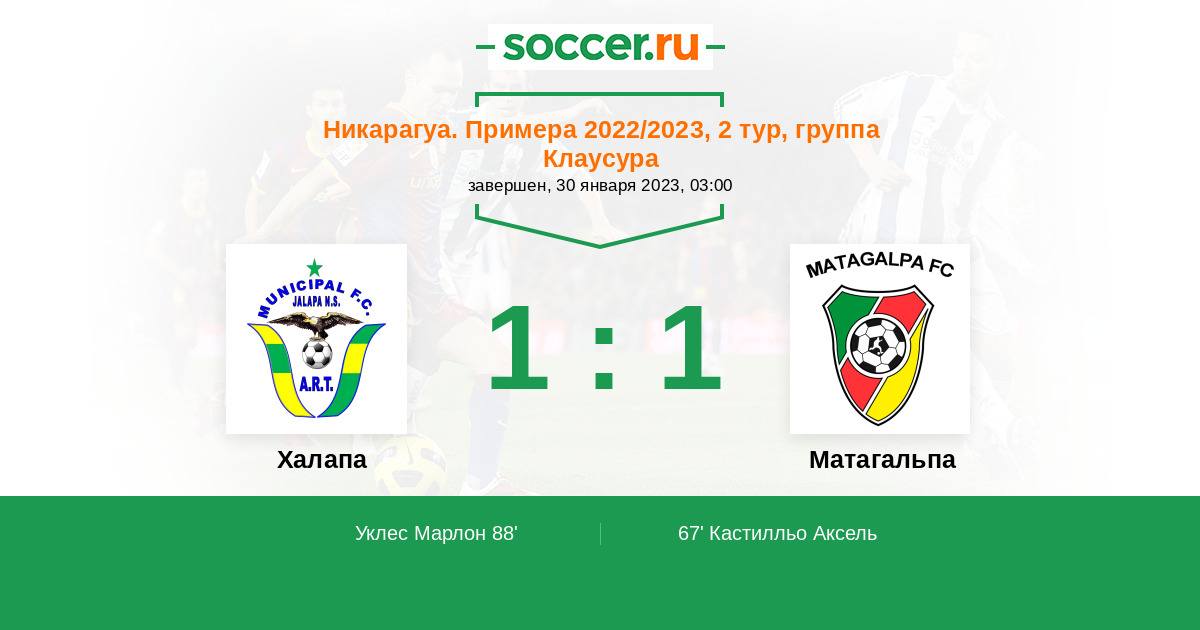 Протокол матча Халапа против Матагальпа