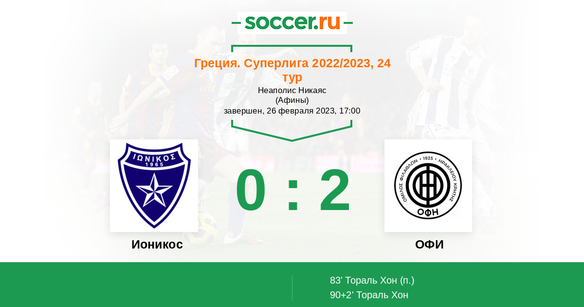Протокол матча Ионикос против ОФИ