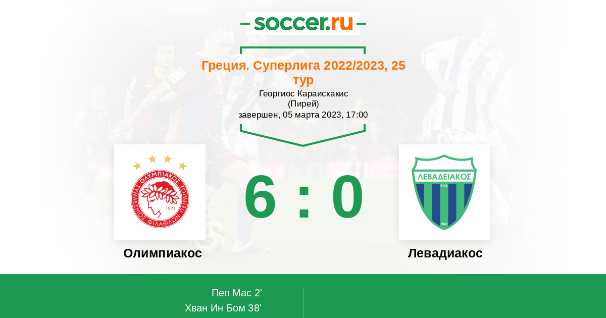 Протокол матча Олимпиакос против Левадиакос