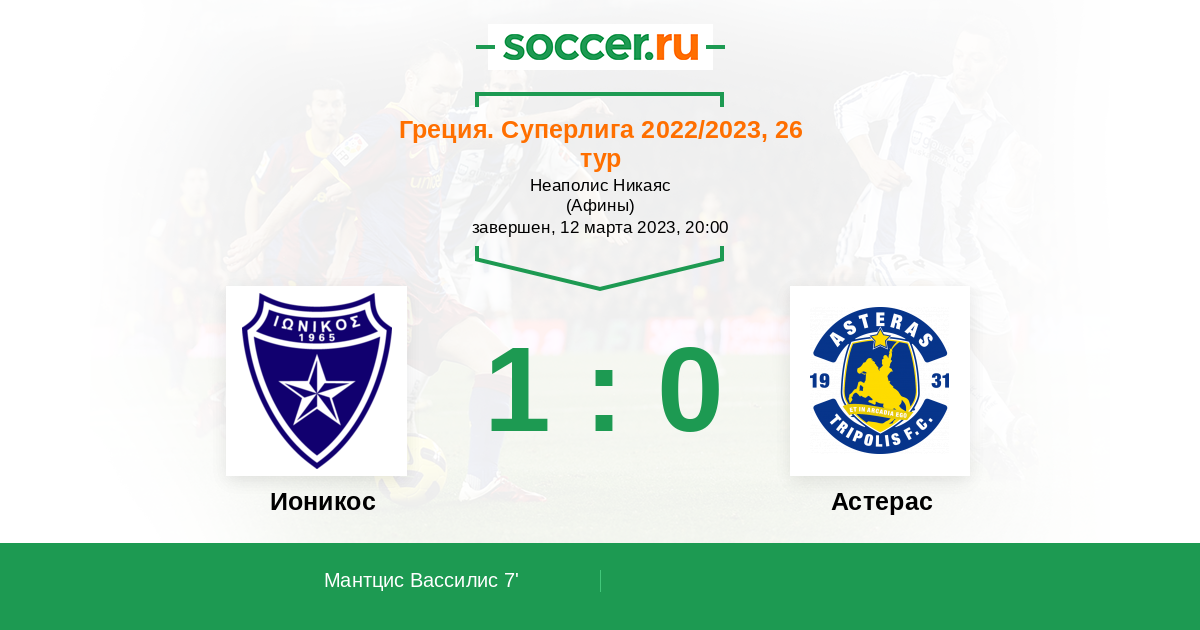 7' (1:0) Мантцис Вассилис (99) (Джордж Валерианос (15))