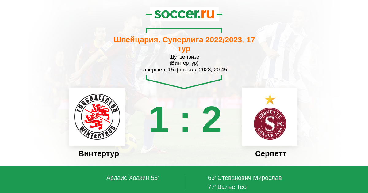 Протокол матча Винтертур против Серветт