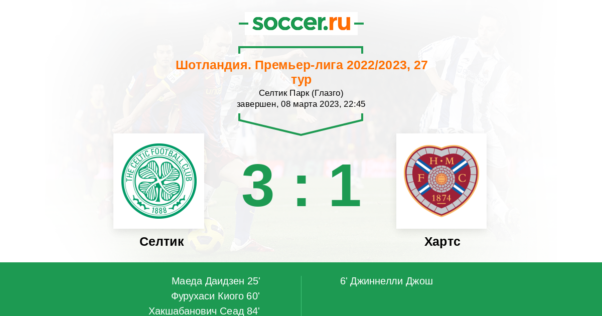 Протокол матча Селтик против Хартс