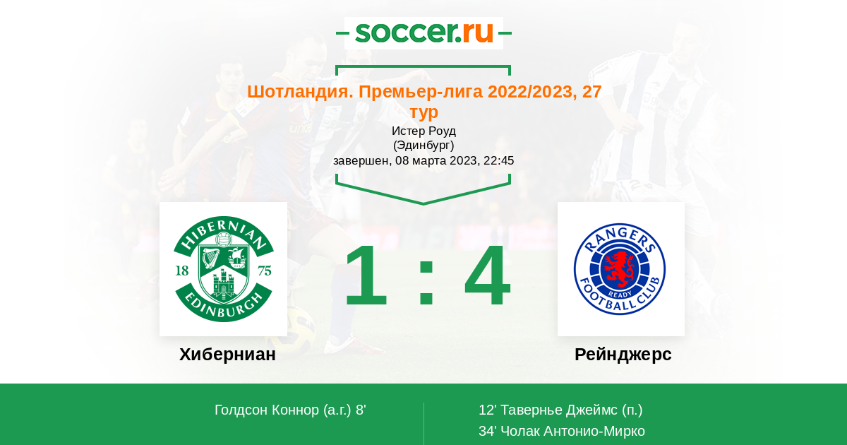 Протокол матча Хиберниан против Рейнджерс