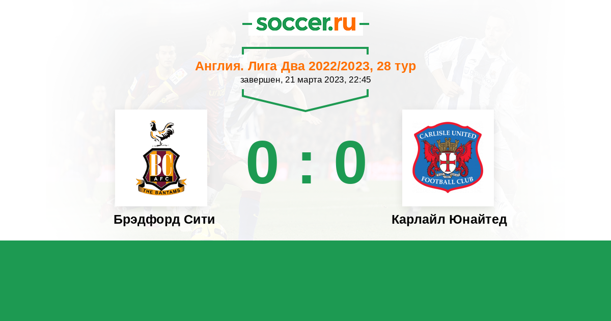 Протокол матча Брэдфорд Сити против Карлайл Юнайтед