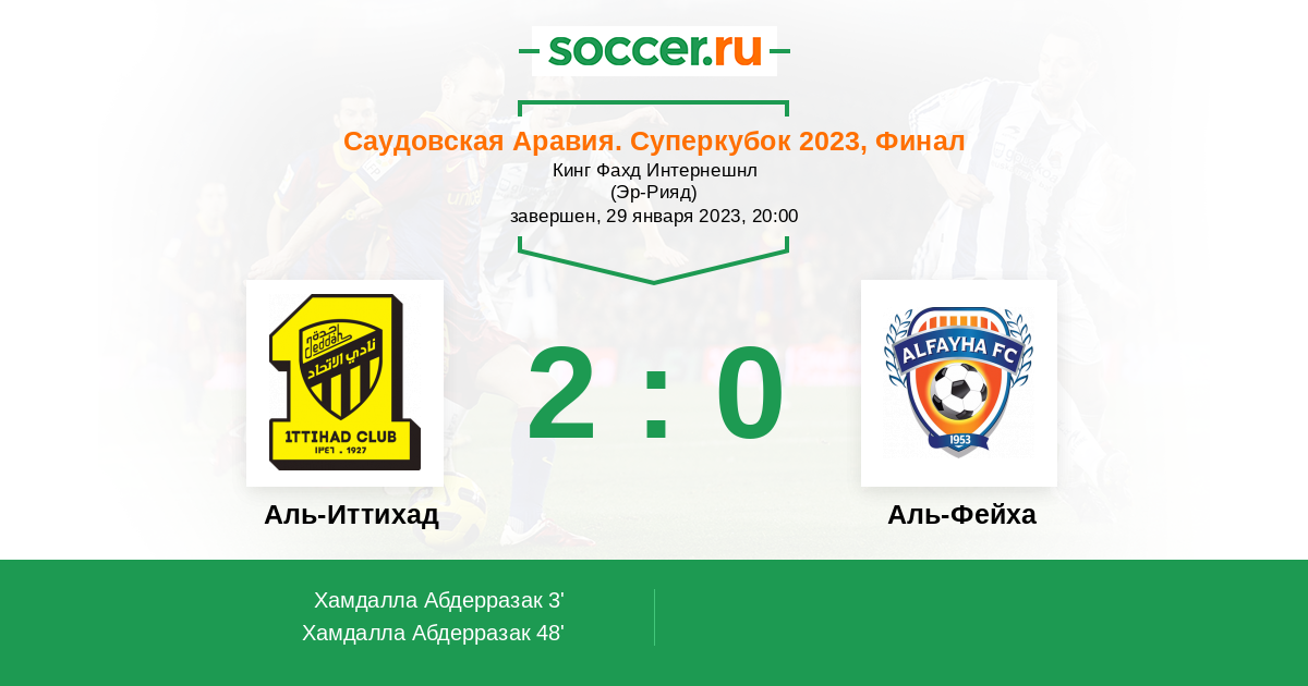 Протокол матча Аль-Иттихад против Аль-Фейха