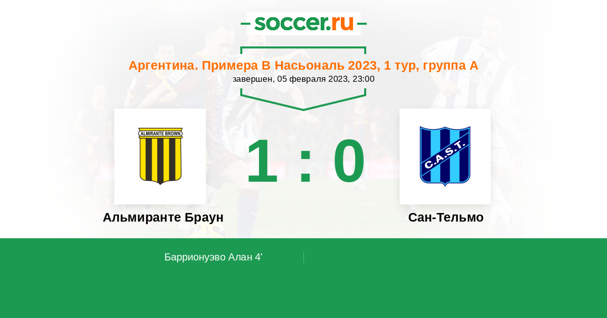 Протокол матча Альмиранте Браун против Сан-Тельмо