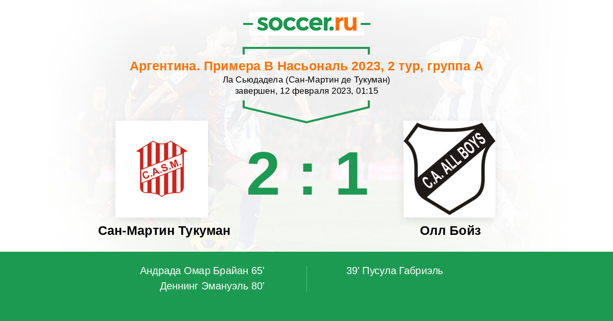Протокол матча Сан-Мартин Тукуман против Олл Бойз