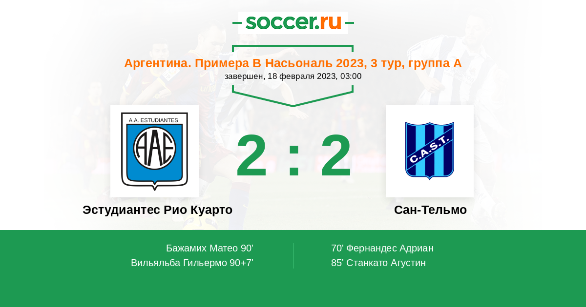 Протокол матча Эстудиантес Рио Куарто против Сан-Тельмо