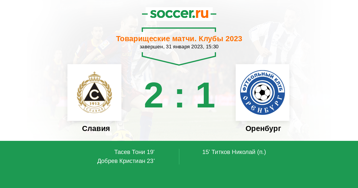 Протокол матча Славия против Оренбург