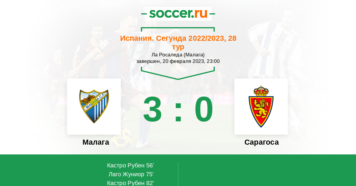 Протокол матча Малага против Сарагоса