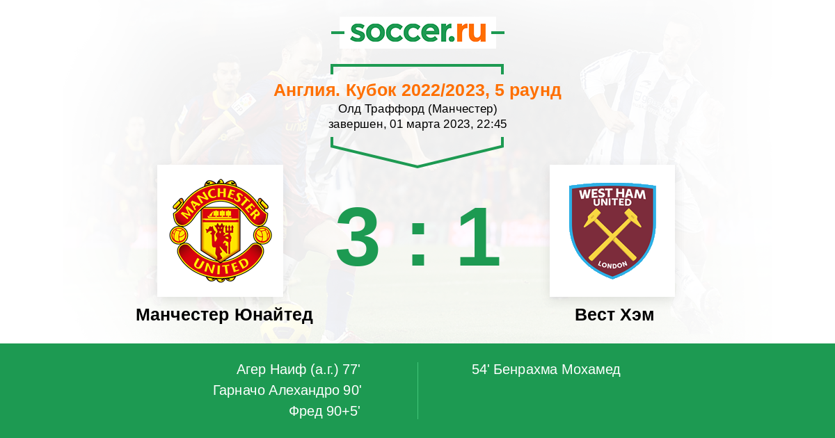 Протокол матча Манчестер Юнайтед против Вест Хэм