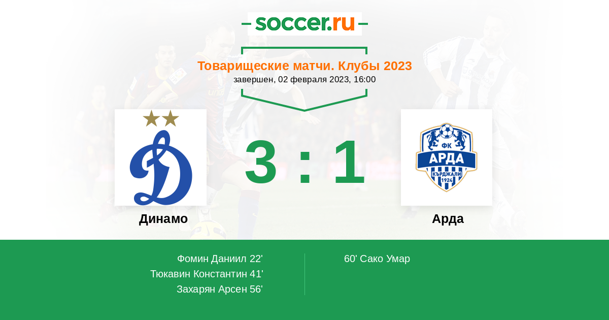 Протокол матча Динамо против Арда
