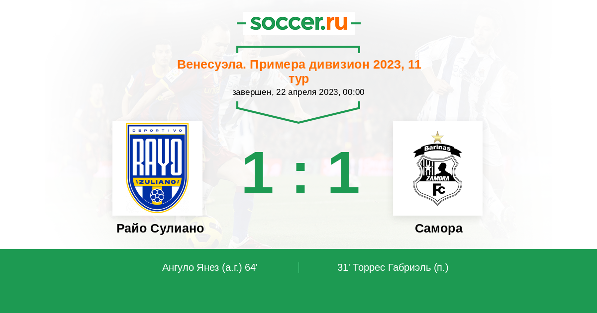 Протокол матча Райо Зулиано против Замора
