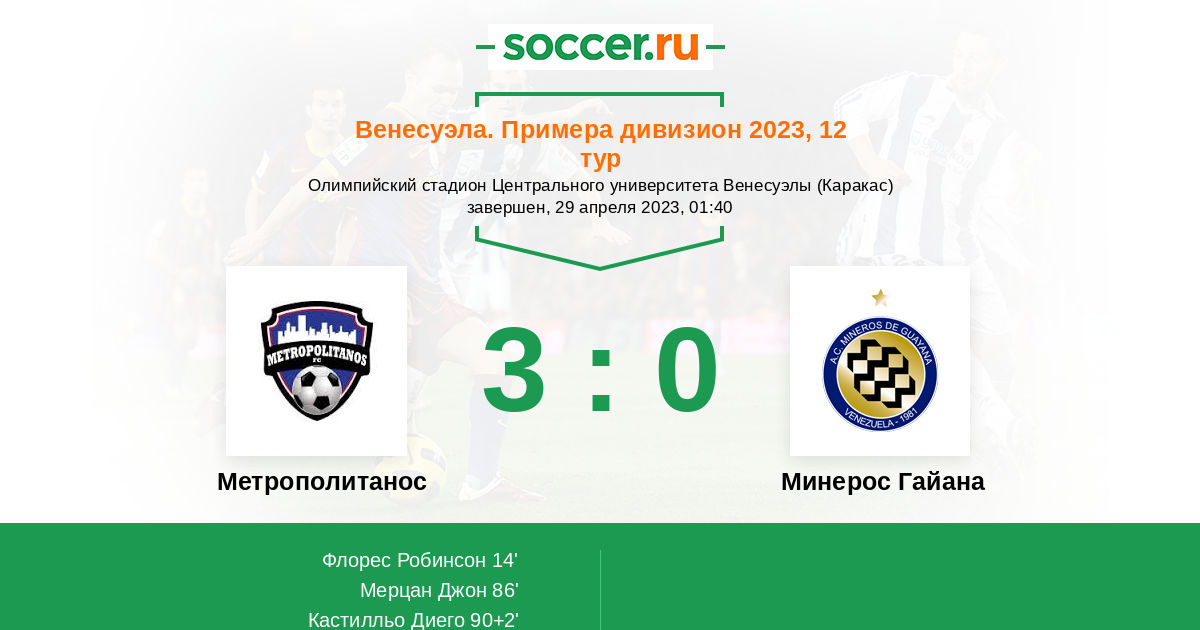 Протокол матча Метрополитанос против Минерос Гайана