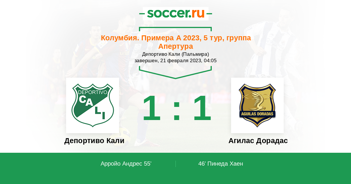 Протокол матча Депортиво Кали против Агилас Дорадас