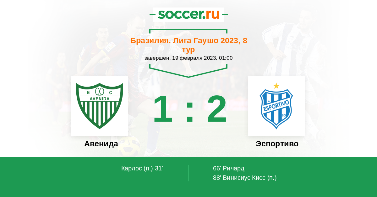 Протокол матча Авенида против Эспортиво